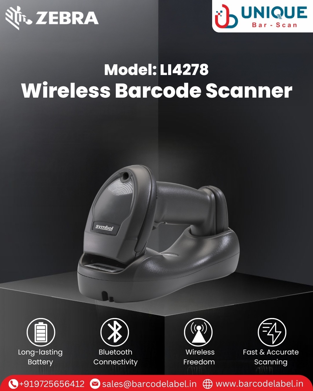 Upgrade your operations with a premium Zebra LI4278 Barcode Scanner today—contact Unique Barscan Solutions now!