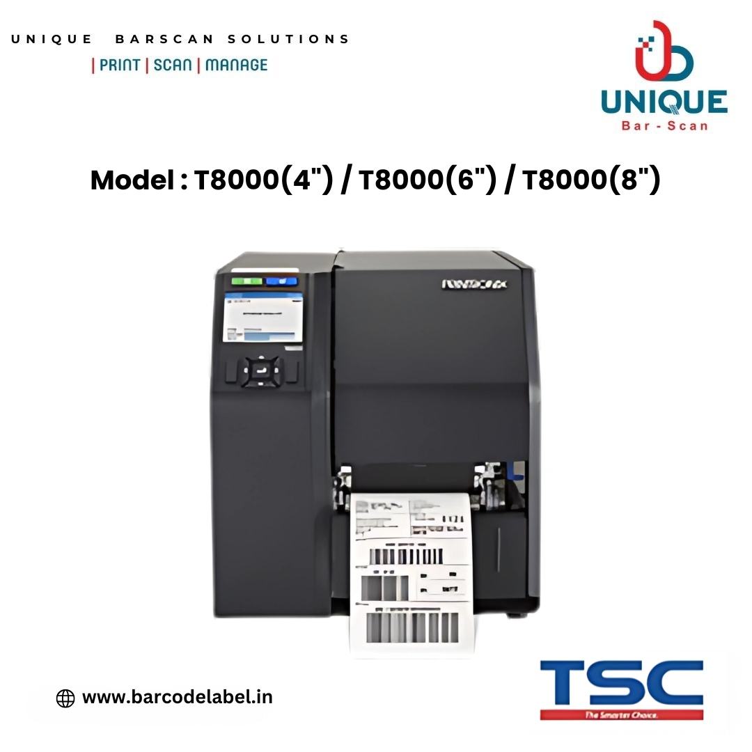 Unique Barscan Solutions presents the TSC T8000 Series Heavy-Duty Industrial Printers, designed for high-performance, large-volume label printing in the most demanding environments. Available in 4-inch, 6-inch, and 8-inch models, the T8000 series delivers exceptional print quality, durability, and high-speed performance, making it the perfect choice for manufacturing, logistics, warehousing, and compliance labeling.