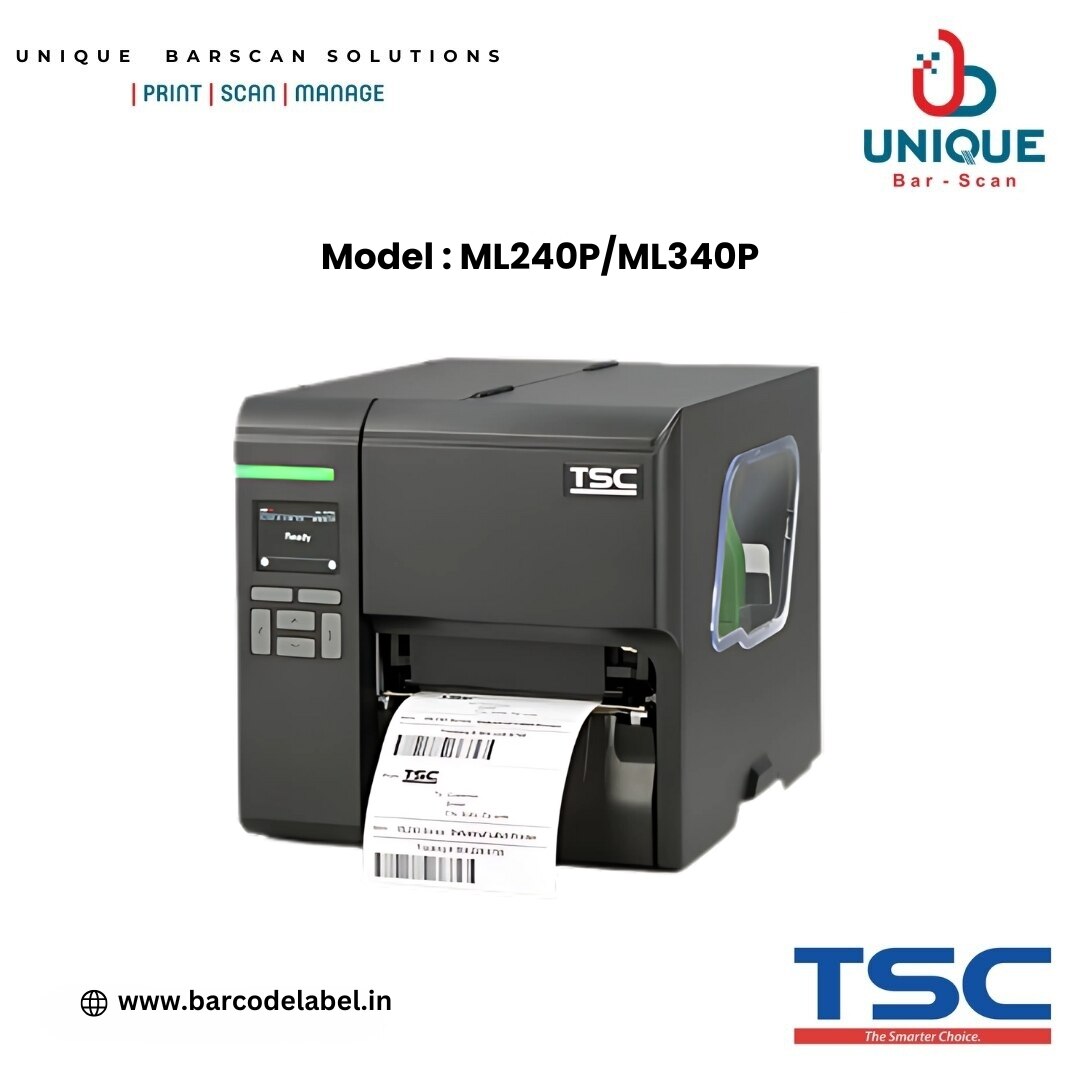 TSC ML340P/ML240P Barcode Printer in Ahmedabad, Gujarat, India | Unique Barscan Solutions. The ML240P/ML340P from Unique Barscan Solutions provides reliable and high-quality printing for a variety of labeling needs. Choose between 203 DPI or 300 DPI resolution and enjoy fast printing speeds to keep your operations running smoothly. Key Features: Resolution: 203 DPI or 300 DPI options for clear, high-quality prints. Speed: Prints at speeds of 6 inches per second at 203 DPI and 5 inches per second at 300 DPI. Connectivity: Multiple options including USB, LAN, RS232, and USB Host for easy integration. Print Width: Supports label widths up to 4.25 inches and down to 0.8 inches for flexible label sizes. Ideal For: Retail, logistics, manufacturing, and more, the ML240P/ML340P is perfect for quick and efficient barcode and label printing. Contact us today to learn more or place an order.
