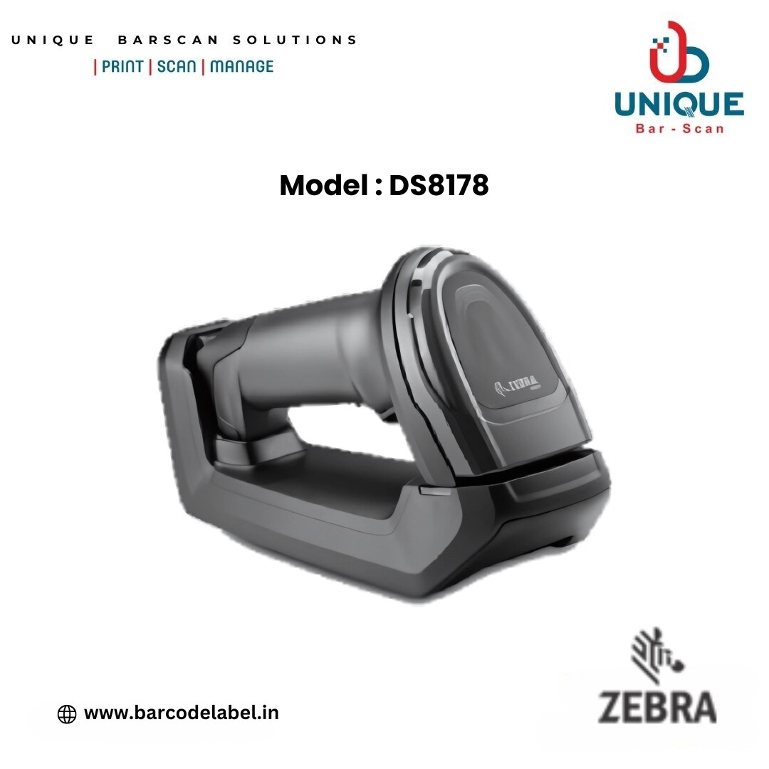 Zebra DS8178 Barcode Scanner in Ahmedabad, Gujarat, India | Unique Barscan Solutions. The DS8178 from Unique Barscan Solutions offers versatile 1D/2D barcode scanning with a cordless design. Ideal for fast-paced retail and warehouse environments, this scanner ensures high durability and reliable performance. Key Features: Type: Cordless barcode scanner for improved mobility and convenience. Data Capture: Scans both 1D and 2D barcodes with exceptional accuracy. Scan Type: Array Imager for quick, reliable scans. Durability: Drop Spec: Survives drops from up to 6 feet (1.5 meters). IP Rating: IP52, offering protection against dust and light water exposure. Warranty: Comes with a 3-year warranty for added reliability. Ideal For: Retail, warehouse, and logistics environments where mobility, durability, and high-performance scanning are crucial. Contact us today to learn more or place an order.